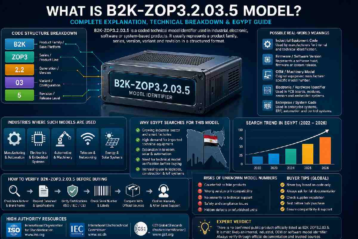 This research-based guide explains what is b2k-zop3.2.03.5 model, possible meanings, applications in Egypt, technical interpretations, usage industries, risks, trends, and how global users can understand such coded models.